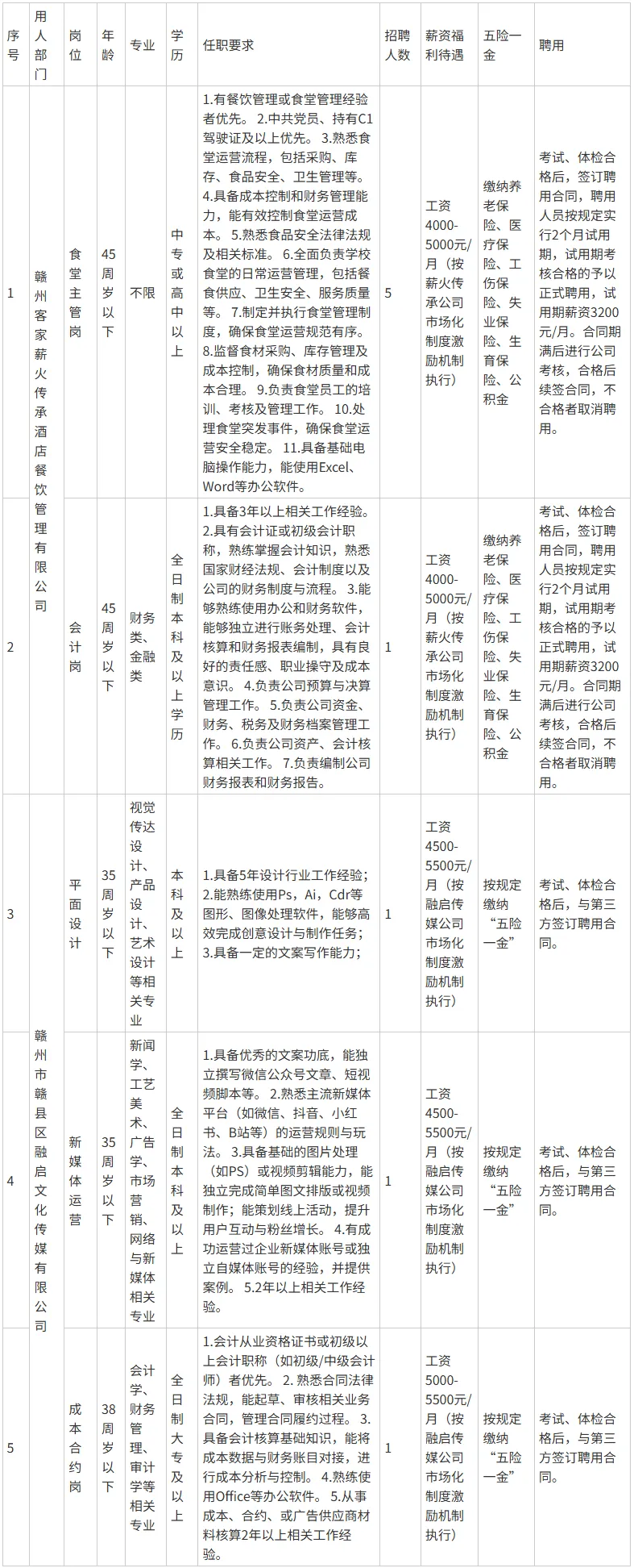 因业务发展需要,赣州市赣县区文化旅游投资集团有限公司下属子公司现面向社会公开招聘派遣制员工9名,现将有关事项公告如下: