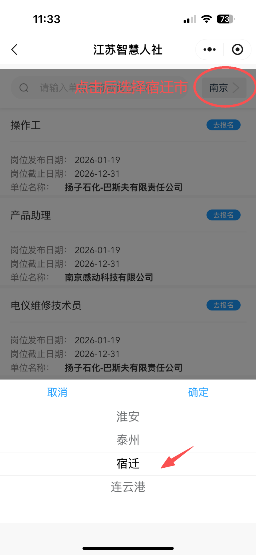 搜索微信小程序:江苏智慧人社、按照下图所示步骤操作报名