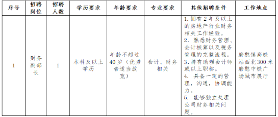 此次面向社会公开招聘财务部副部长1人。
