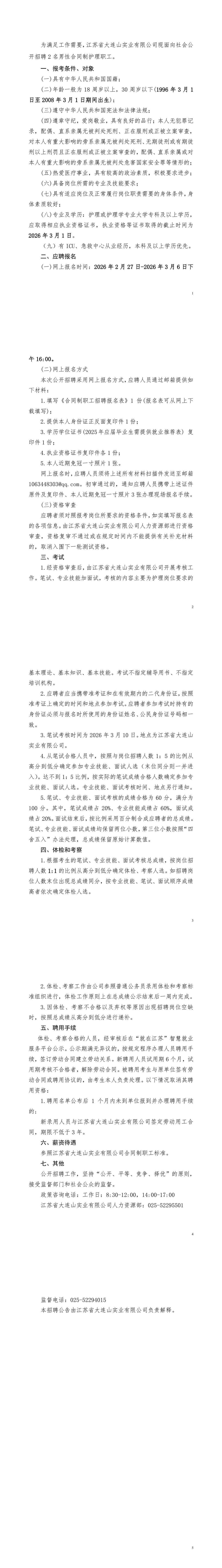 报名中 【合同制】2026年江苏省大连山实业有限公司医疗卫生技术人员招聘公告(招若干人,02月27日~03月13日报名)