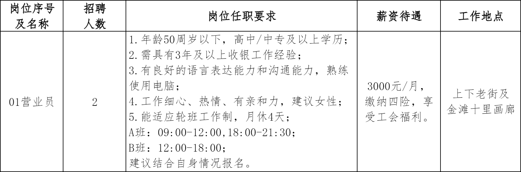 工作地点:上下老街旗舰店及金滩十里画廊运营中心。