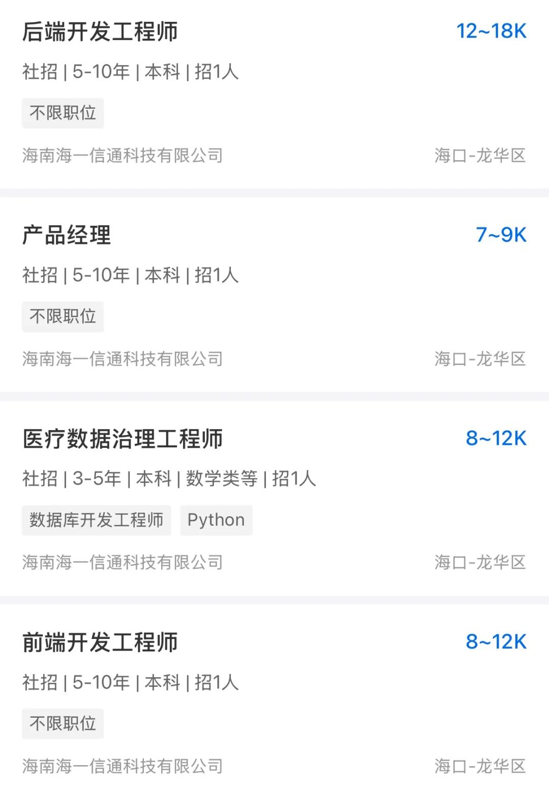 单位简介海南海一信通科技有限公司是海南医科大学(海南省医学科学院)所属的国有控股校办企业,致力于医疗健康产业的数字化转型。公司汇聚科研、技术与业务人才,主营业务涵盖真实世界研究、医疗政策研究、数智医疗、数字健康产业、可信数据空间与数据处理服务六大板块,具体包括医疗、卫生、健康领域的科学研究、产学研转化、政策支持、信息化建设以及大数据与AI智能应用。