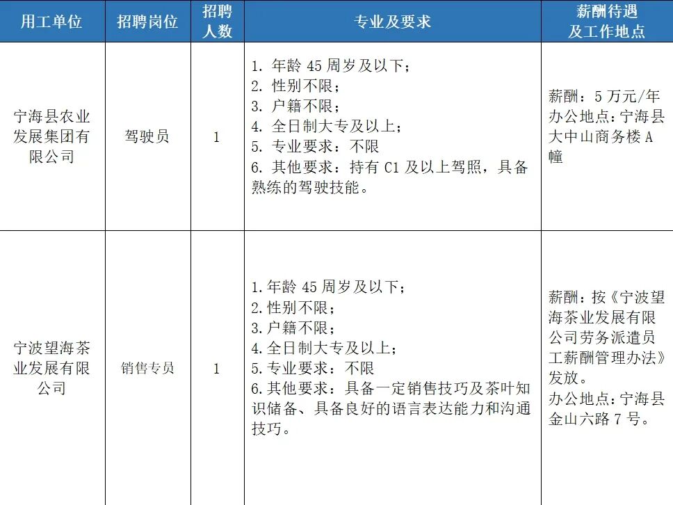 根据工作需要,宁海县农业发展集团有限公司拟面向社会招聘派遣制工作人员2名。现将有关招聘事项公告如下: