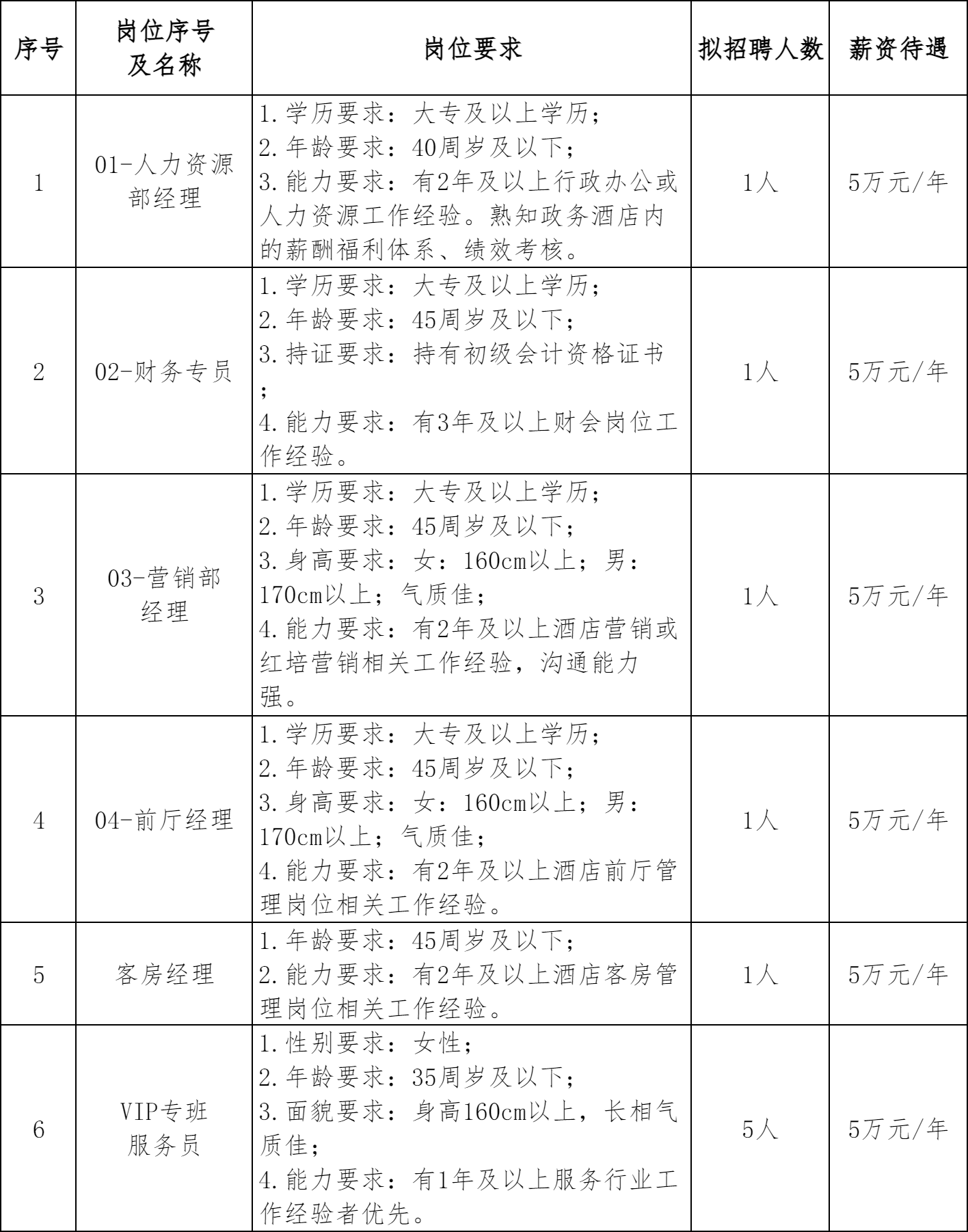 本次公开招聘计划招录10人,具体岗位及要求详见《2026年井冈山迎宾馆管理有限公司招聘岗位及任职要求》(附件1)。