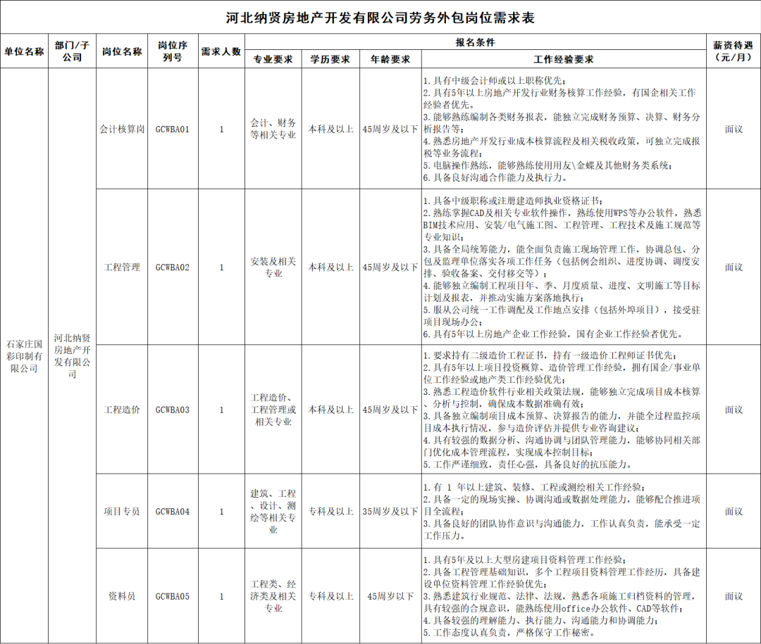 河北纳贤房地产开发有限公司隶属于石家庄国彩印制有限公司,是一家全资国有企业,主营业务为房地产开发与经营,注册地址位于中国(河北)自由贸易试验区正定片区,现办公地址坐落于正定县石家庄市综合商务中心。