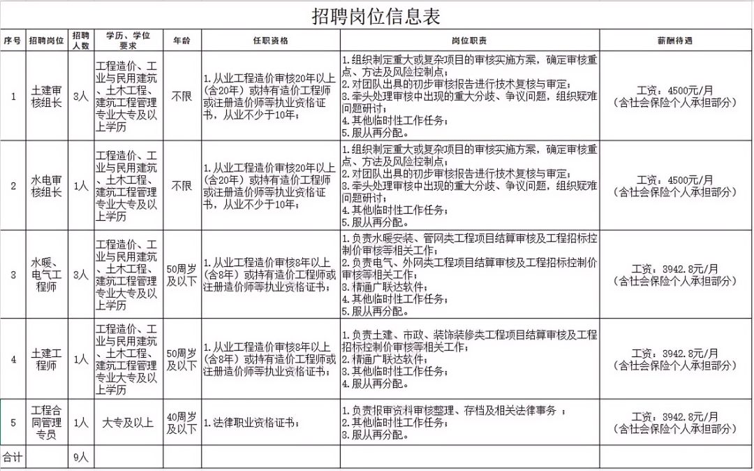 根据工作需要,公司面向社会招聘9名劳务派遣人员,现将有关事项公告如下: