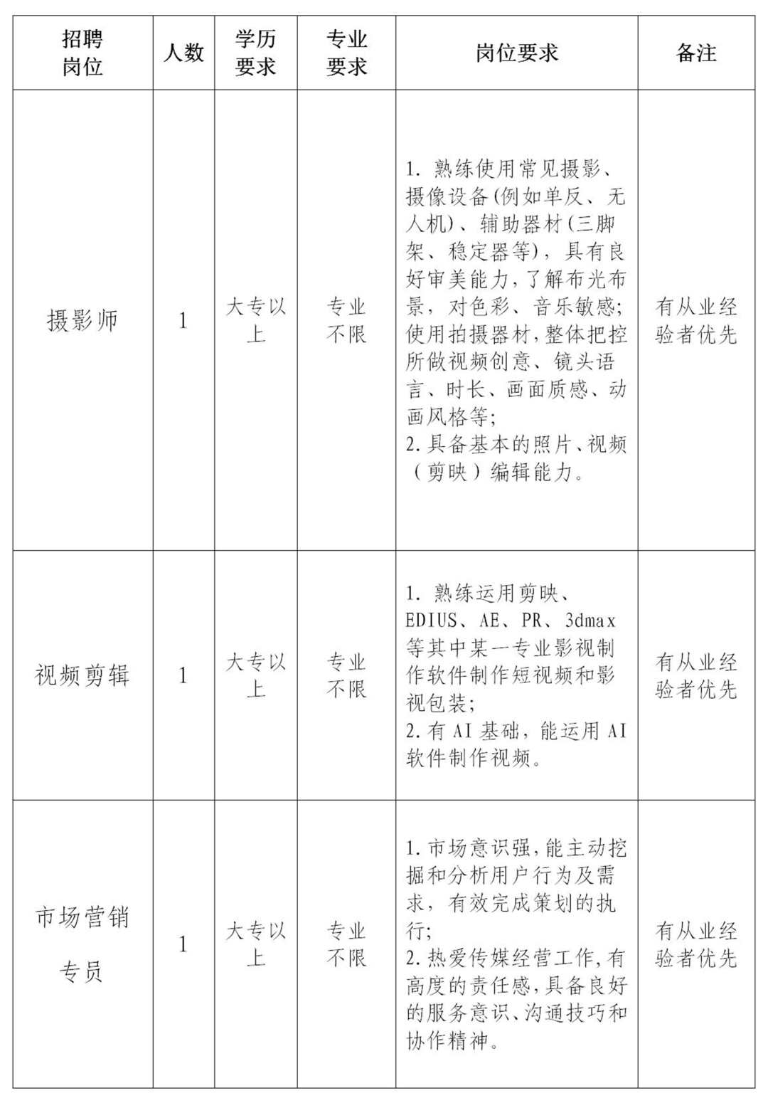 因工作需要,江西蓝鹛文化传媒有限公司面向社会公开招募3名见习岗位人员,现将有关事项公告如下: