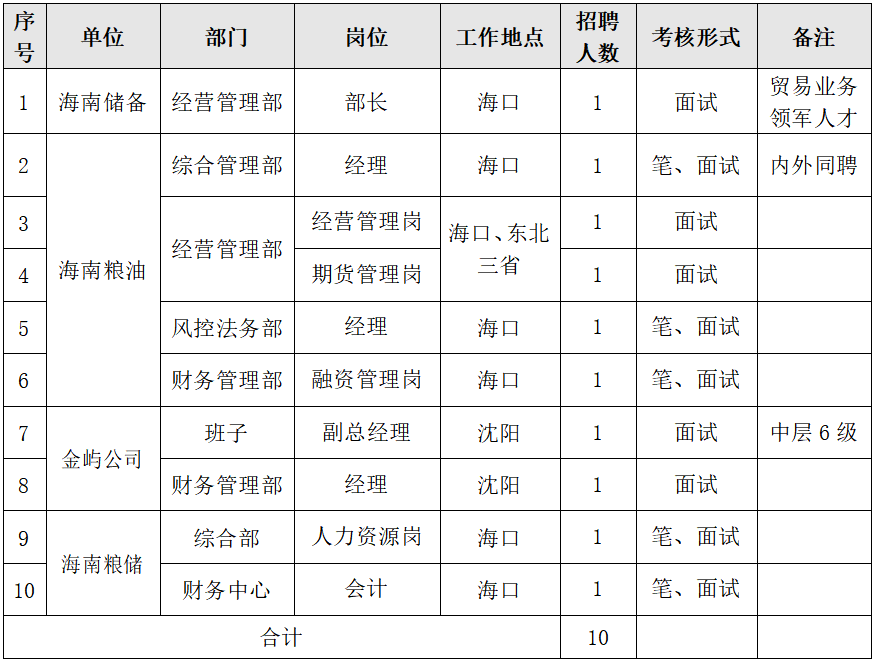 1.海南储备经营管理部部长(贸易业务领军人才)(1名)