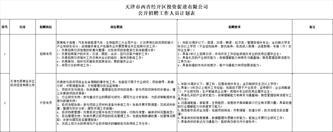 附件:《天津市西青经开区投资促进有限公司公开招聘工作人员计划表》