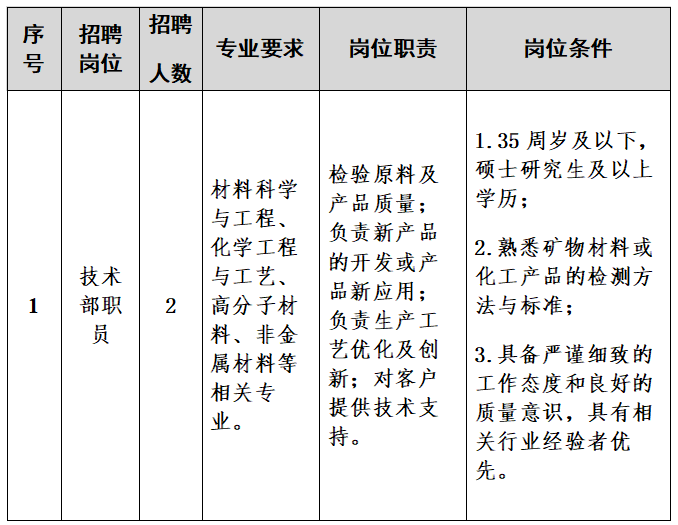 根据茂名市城乡基础设施建设投资有限公司下属茂名高岭科技有限公司的业务发展需要,为建立健全适应市场发展的人员结构,拟面向社会公开招聘2名技术部职员,现将有关事项公告如下: