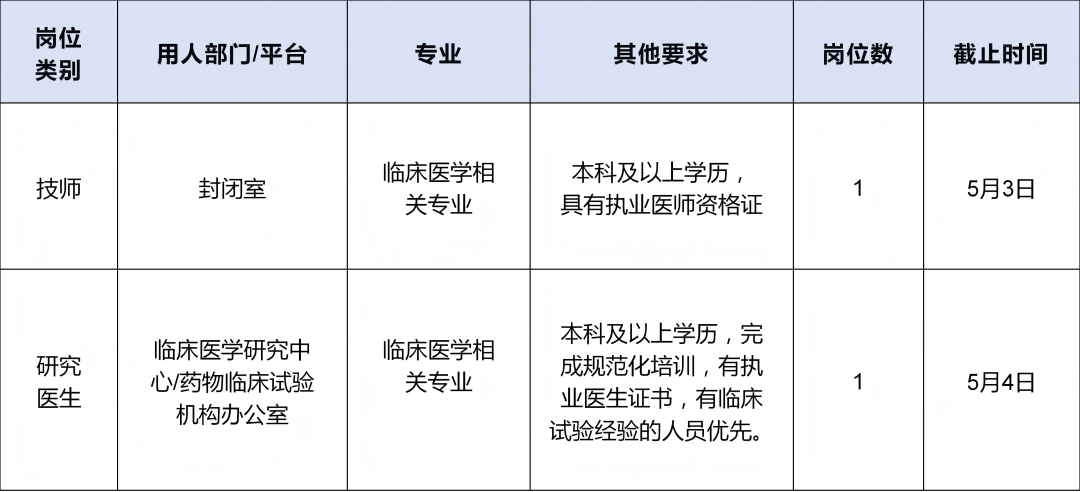 一、岗位及要求