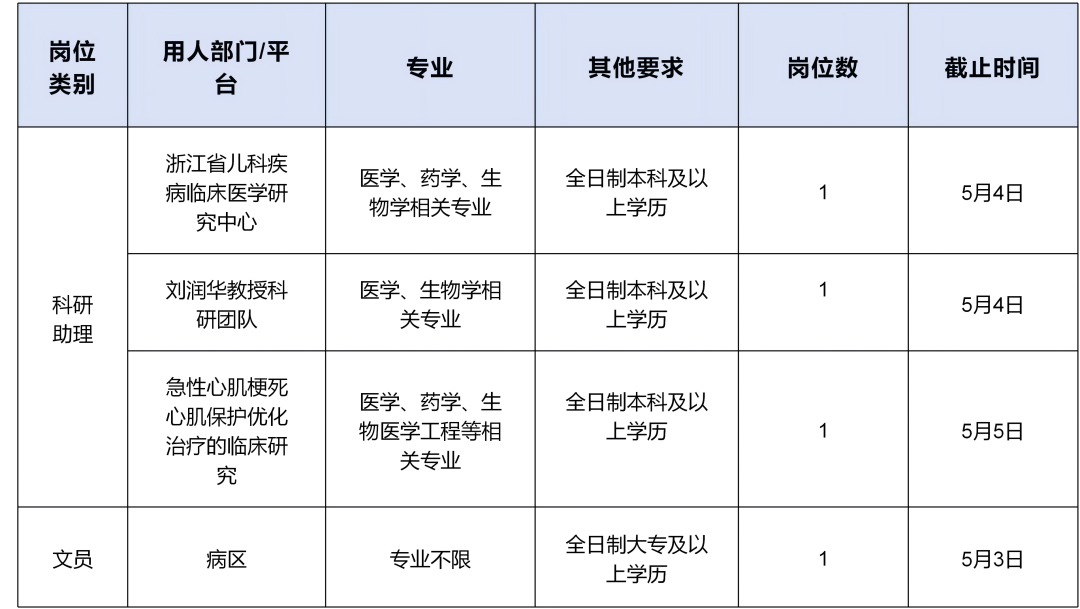 温州医科大学附属第二医院招聘启事