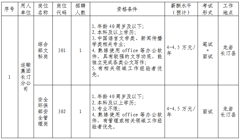 龙洲集团股份有限公司(以下简称公司)经福建省人民政府批准于2003年8月29日注册成立。2012年6月,公司在深圳证券交易所成功挂牌上市(股票代码:002682,公司网址:www.lzgf.cn),实际控制人为龙岩市国资委。目前,公司已逐步发展成为集现代物流、汽车制造及销售与服务、汽车客运及站务服务、成品油及天然气销售等业务为一体的现代服务产业化集团。公司因经营发展需要,现对所属企业相关岗位进行公开招聘,具体公告如下: